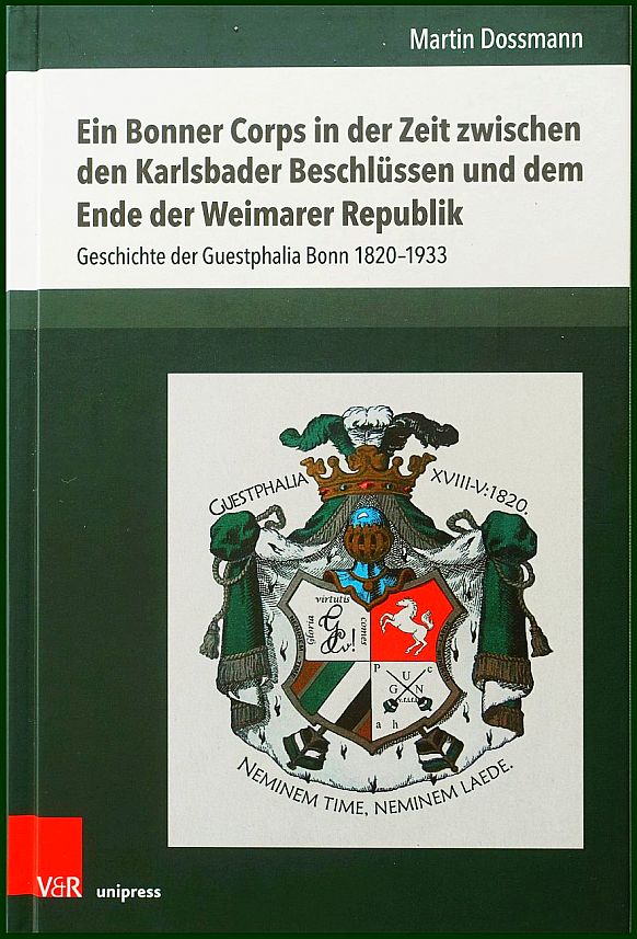 Vor 100 Semestern hat Martin Dossmann sein Studium der Rechtswissenschaften in Bonn begonnen. Damals hat ihn Corps Guestphalia Bonn aufgenommen, dem er bis heute angehört. Nun hat er eine maßstabsetzende Geschichte der ersten elf Jahrzehnte seiner Westfalen veröffentlicht. Er fragt heute: „Warum bin ich Mitglied eines studentischen Corps geworden?“ Seine Antwort ist überzeugend, aber auch überraschend. Das Wort hat Dossmann Guestphaliae Bonn, Isariae, Rhenaniae Freiburg: