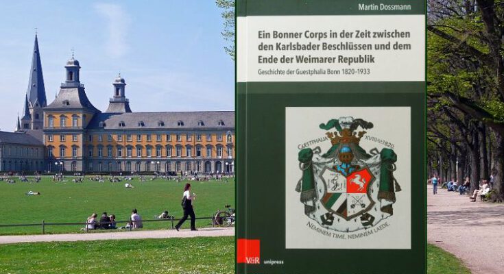 Dossmann, Martin, Ein Bonner Corps in der Zeit zwischen den Karlsbader Beschlüssen und dem Ende der Weimarer Republik. Geschichte der Guestphalia Bonn 1820 – 1933, Göttingen 2025, geb., 510 Seiten, zahlreiche Abb. s/w, ISBN 978-3-8471-1871-8, 70 Euro.