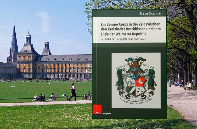Dossmann, Martin, Ein Bonner Corps in der Zeit zwischen den Karlsbader Beschlüssen und dem Ende der Weimarer Republik. Geschichte der Guestphalia Bonn 1820 – 1933, Göttingen 2025, geb., 510 Seiten, zahlreiche Abb. s/w, ISBN 978-3-8471-1871-8, 70 Euro.
